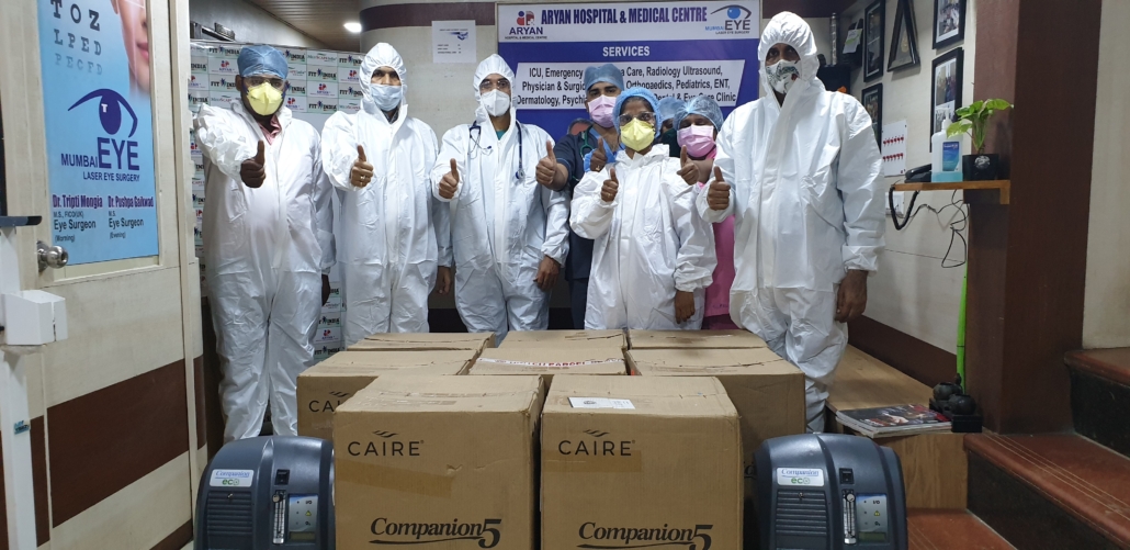Avacend sent 10 oxygen concentrators OCSI Companion-5 CAIRE to Aryan Hospital & Medical Centre, Mumbai they are a completely dedicated covid care centre and has also been closely working on policy issues with the Government.